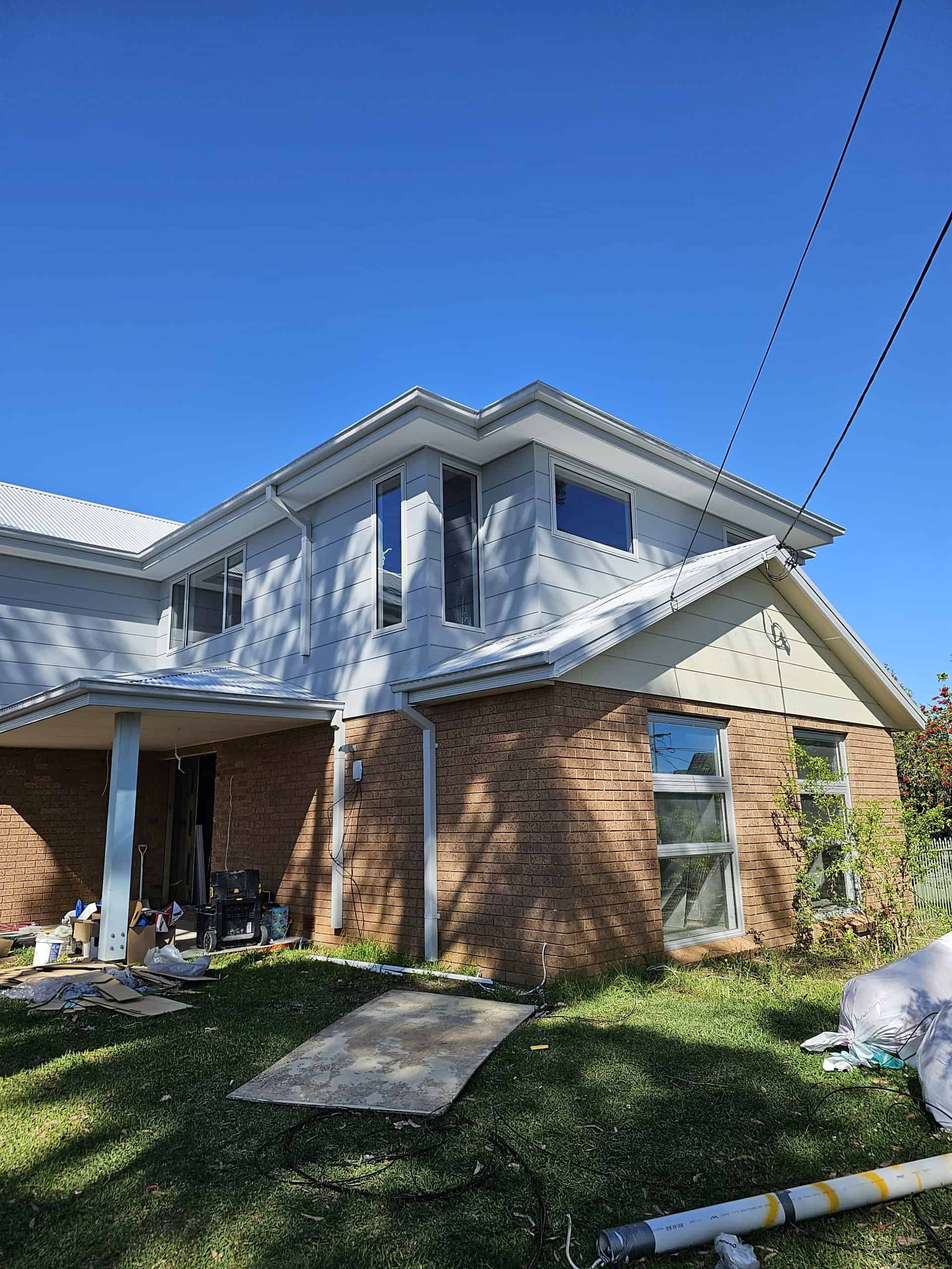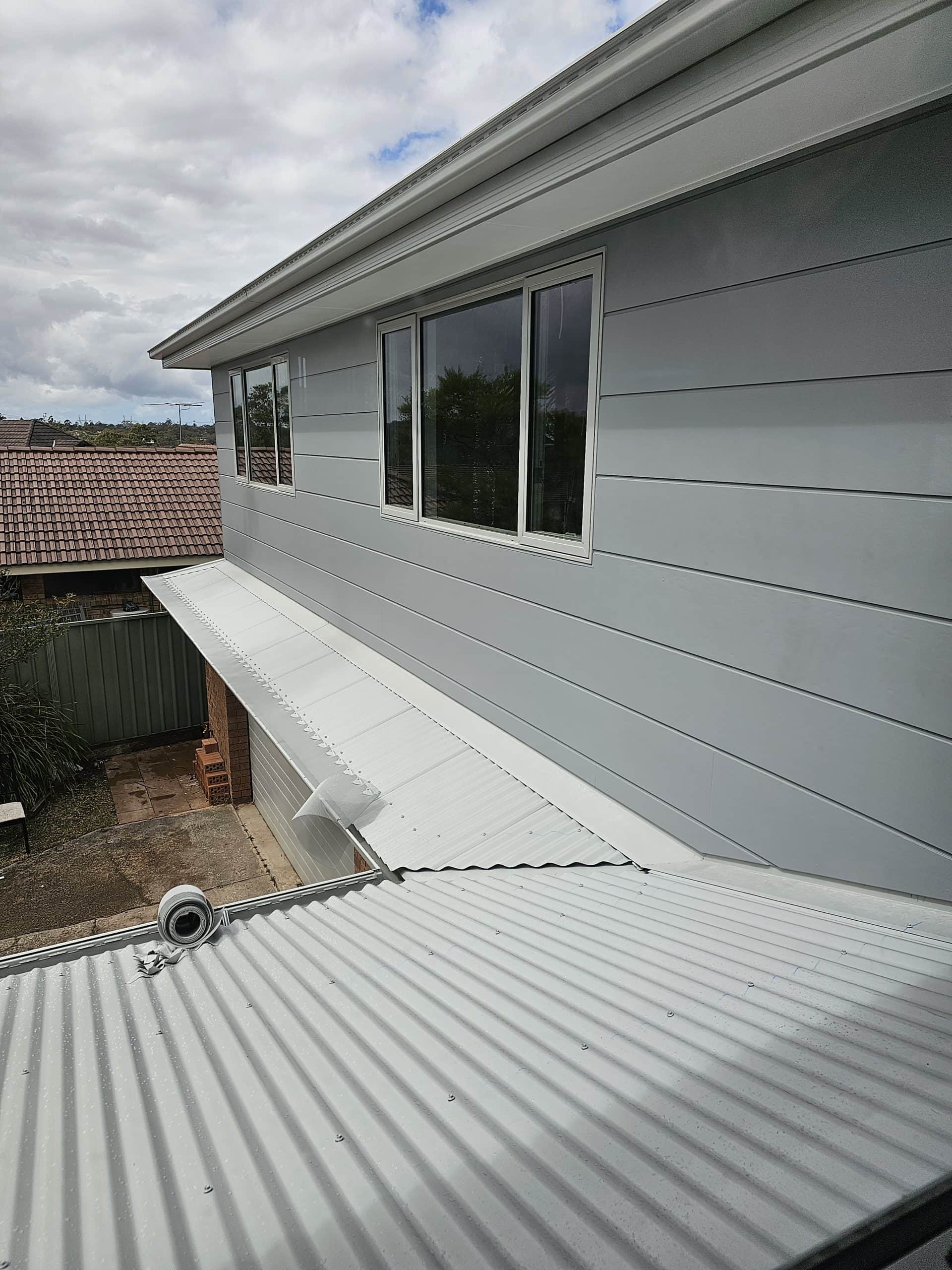 Our clients chose to have the exterior of the second story extension in cladding which was painted, along with a Colorbond roof. All the new windows were Rylock windows with auto awnings over the windows as per the Basix specifications.