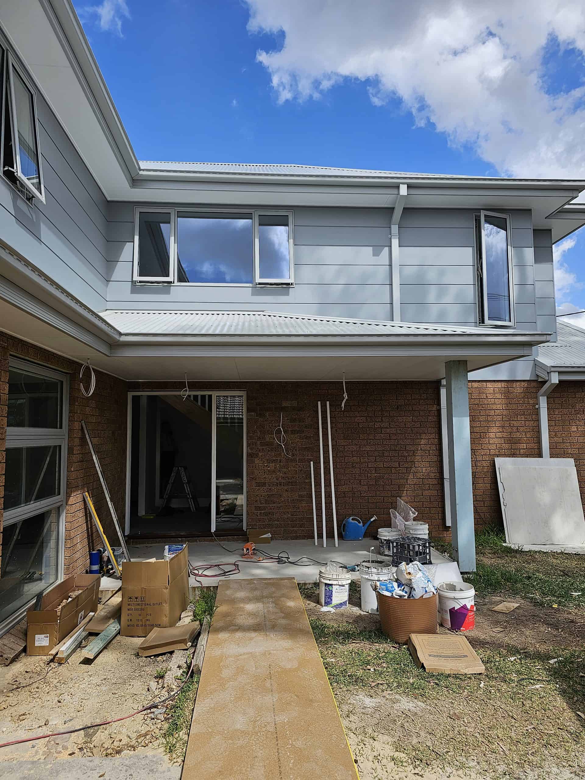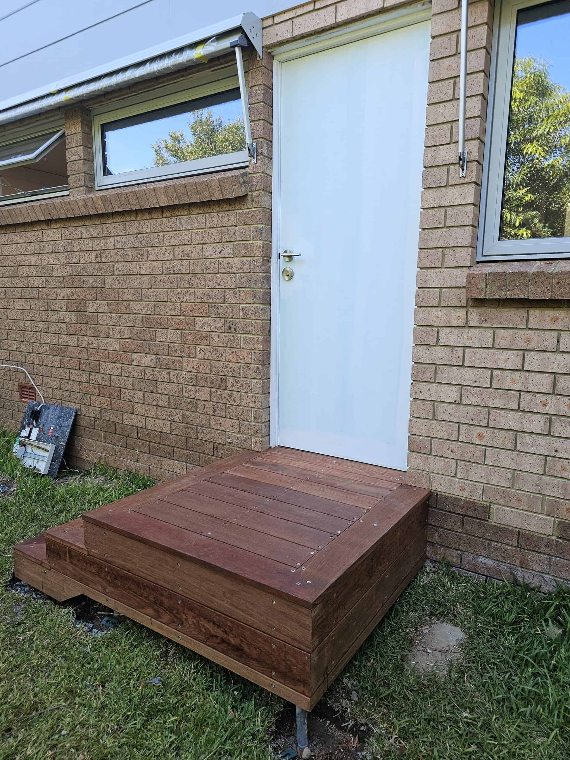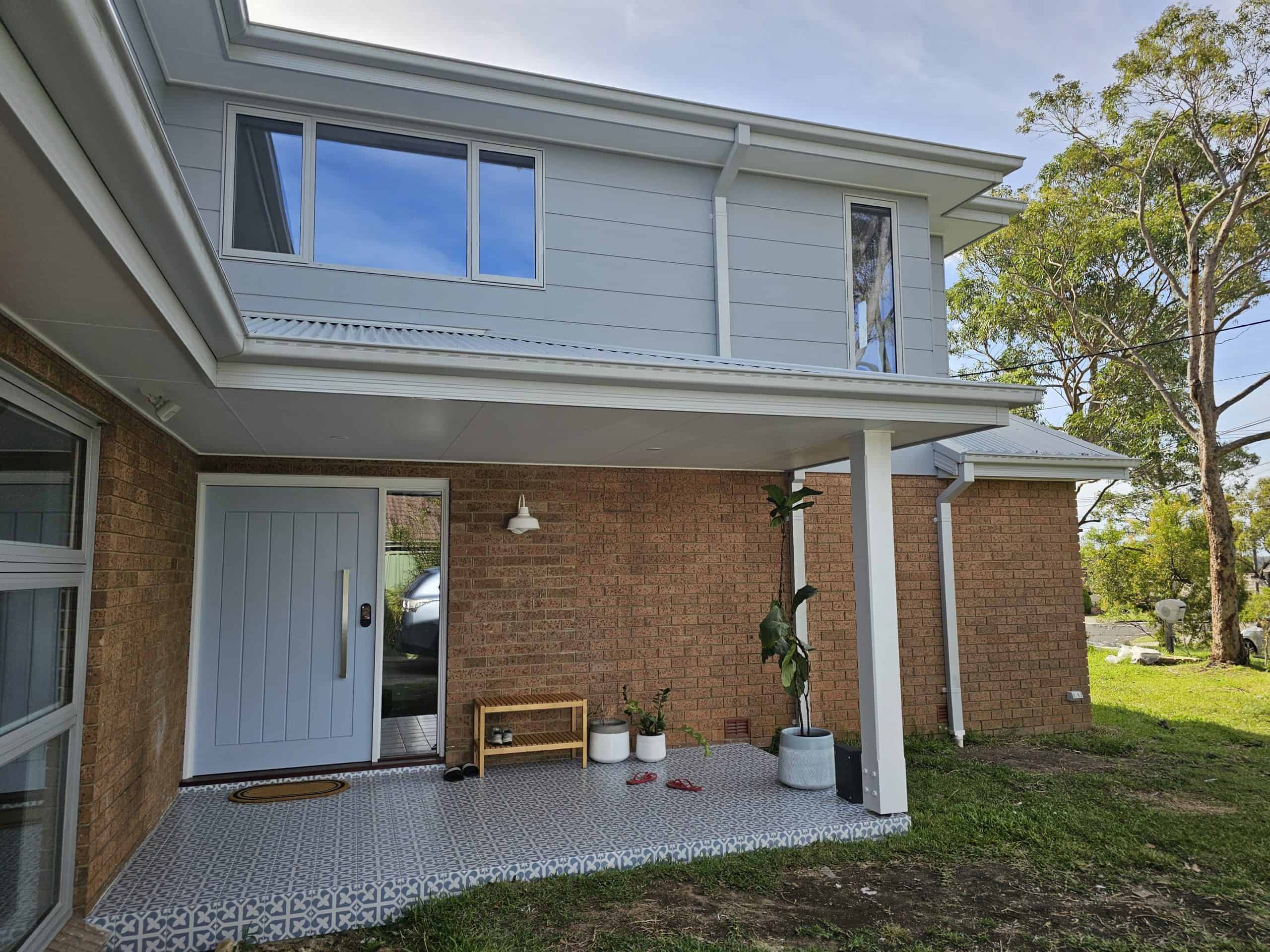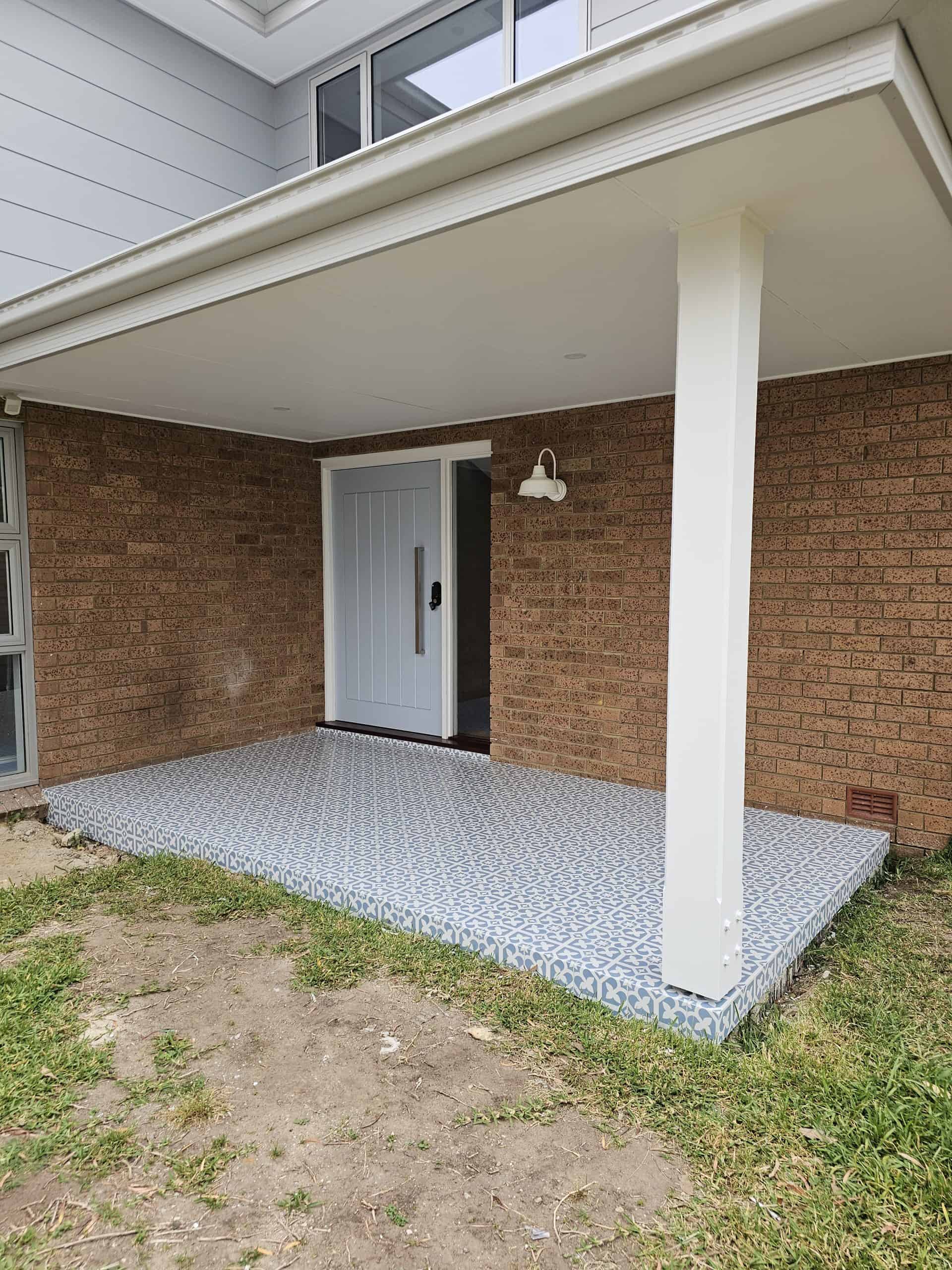To enhance the entry, a new patio, complete with roof was created for the front door. Building the patio, we paid particular attention to screeding the area to be level, for it to be at a height conducive for guests to step onto as well as ensuring the space was large enough to protect visitors from bad weather. The area was tiled and painted to complete the look, providing a welcoming feeling for visitors. In addition to the front patio, we also build timber steps for their back door.