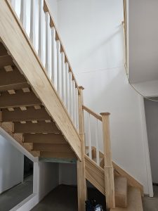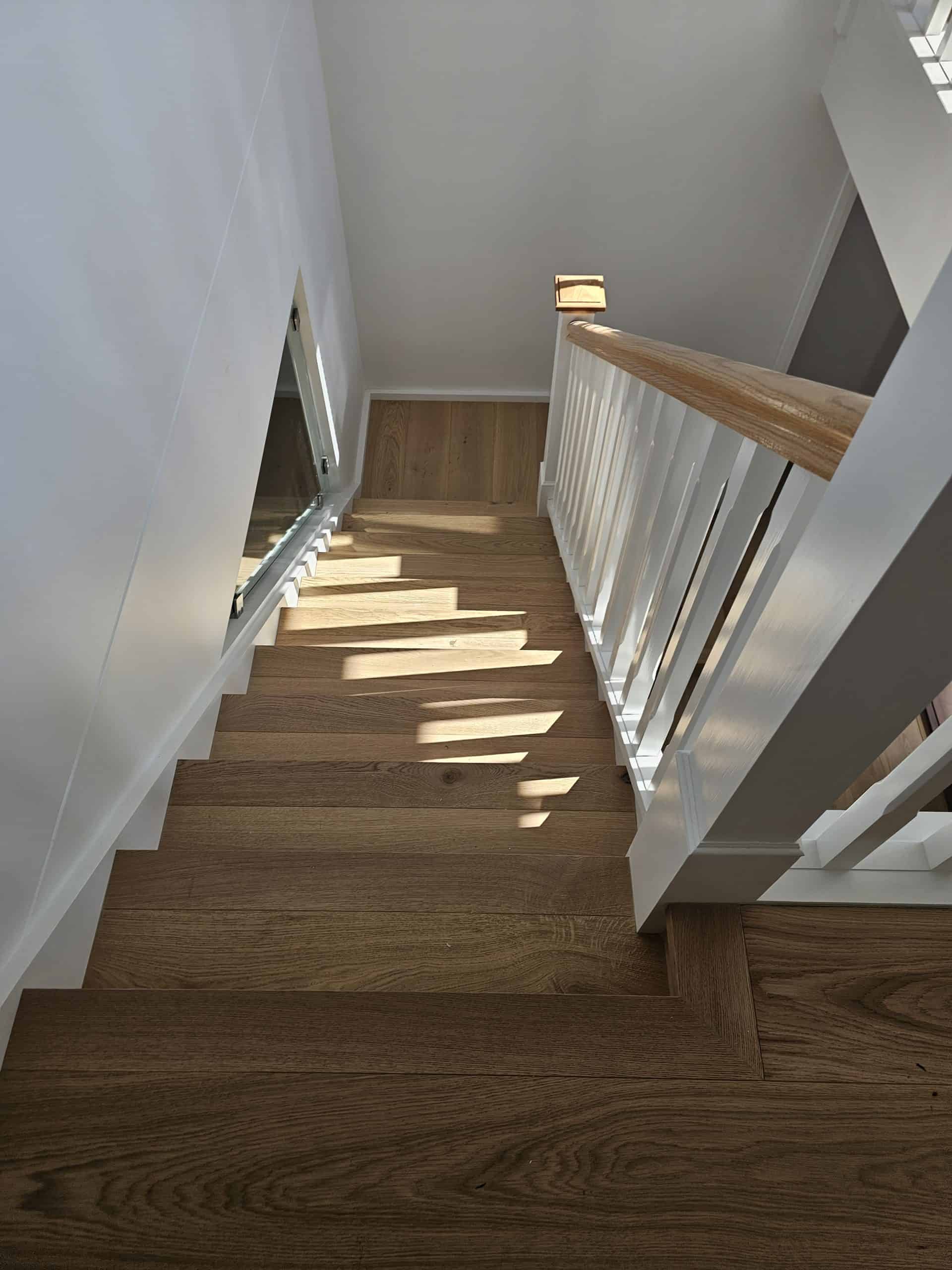 Working together with Sydney Staircase, the outcome was a magnificent timber staircase with railing. To further enhance the space within the staircase, we cut out a portion of a wall and inserted a glass window. This opened the space, provided additional light and is now a unique and aesthetically pleasing feature of the house for the owners.