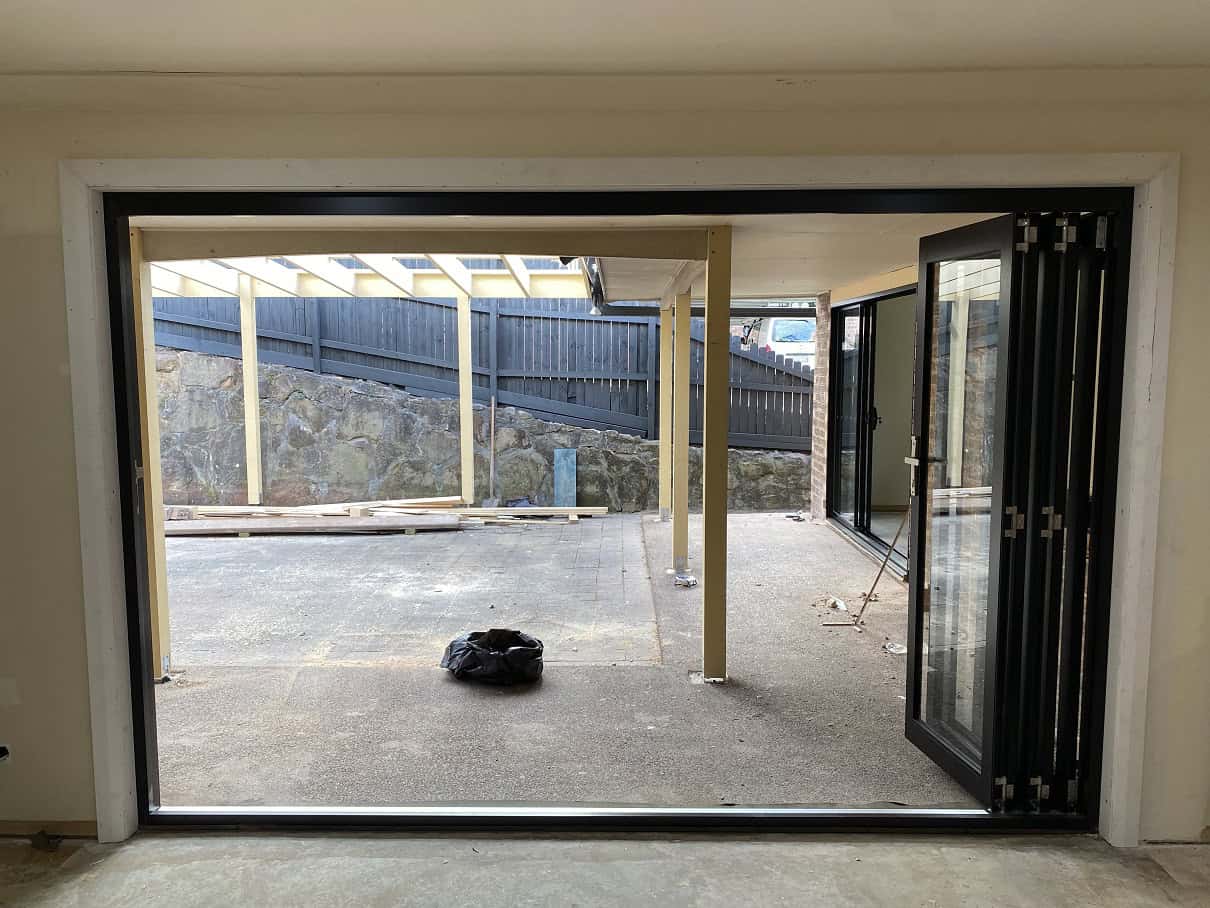 In creating an open, easy to entertain home, our client chose to install bi-fold doors, windows and stacker doors along with a new front door to modernise the house. We installed a 1200 mm wide front door, then removed the back windows and doors. To install the bi-fold doors, we started by installing a structural timber beam to ensure the structural integrity of the house remained while we open the space up. The aluminium bi-fold door was installed in the living room and allows the clients to open the living room to the outdoor entertaining area with ease. In addition to this, we also installed a stacker door and bi-fold window.