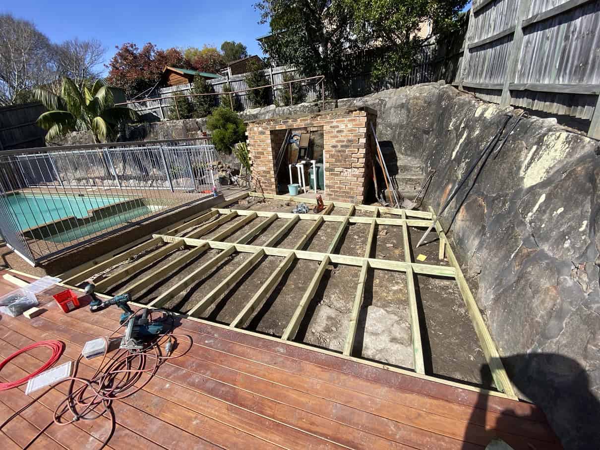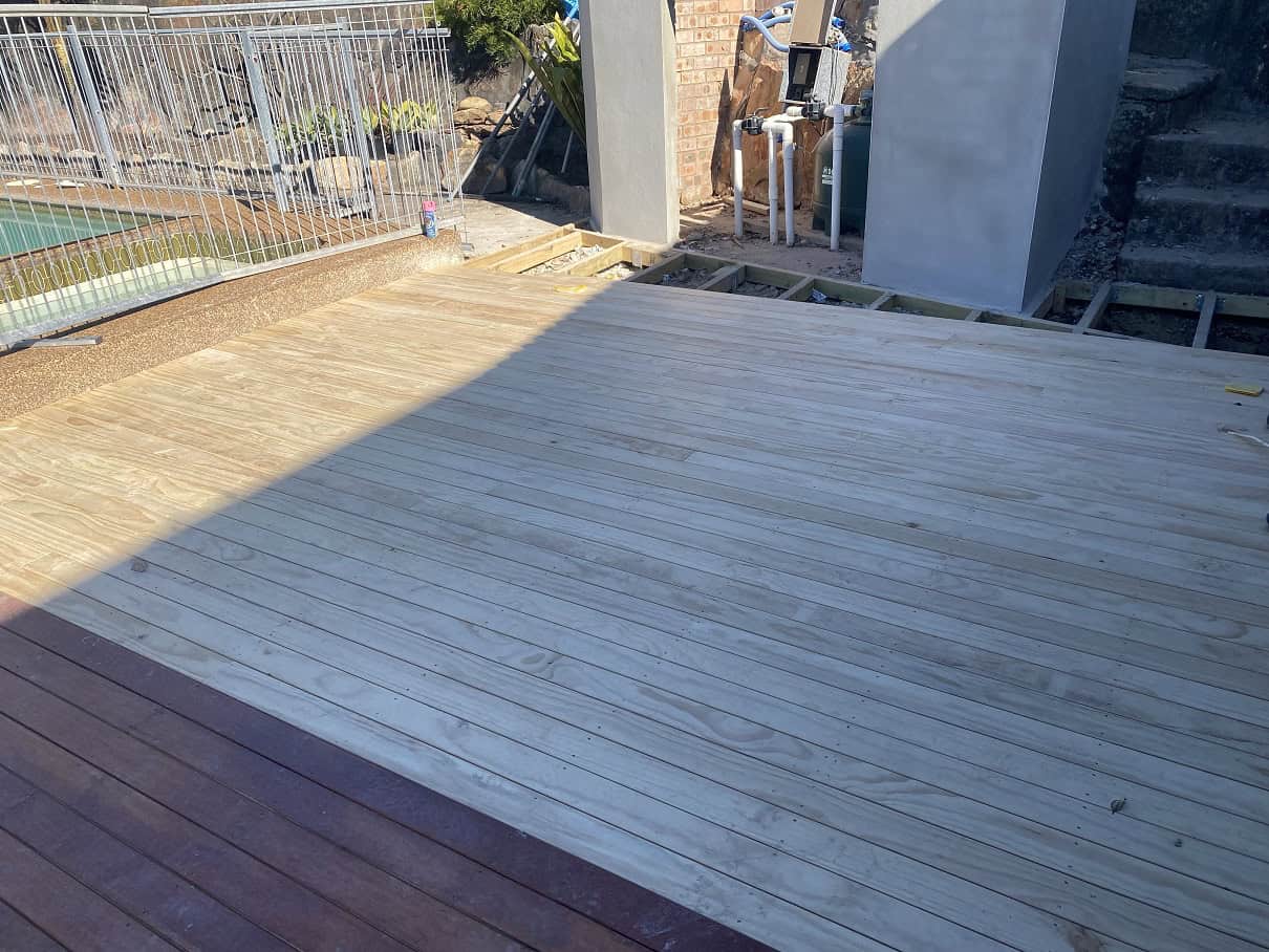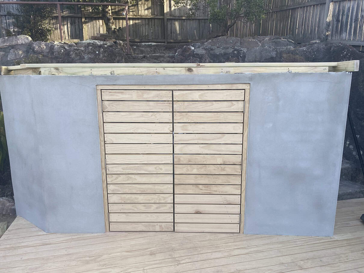 To start the pool area renovations, we removed the existing Corinthian columns and replaced them with 112×112 mm Losp timber posts. We removed the existing pergola and replaced it with a new fly-over pergola, covered with Laserlite 2000 roof sheets. We updated the pool pump storage area by installing timber doors and applying an acrylic render. In addition to this we constructed a roof structure to pool pump storage. The new look pool pump storage is modern and stylish and compliments the house.